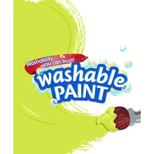 Get crafting with Crayola Washable Paint! Featuring vibrant, richly pigmented color, this craft paint is perfect for creating eye-catching artwork. Smooth, creamy colors are easy to blend and provide opaque coverage on a variety of surfaces. Use for large group projects, classroom crafts, at home creative activities and more! Colors can be used on their own or combined with other washable paints to create your own unique shade. Stray marks wash easily from skin and most washable clothing.