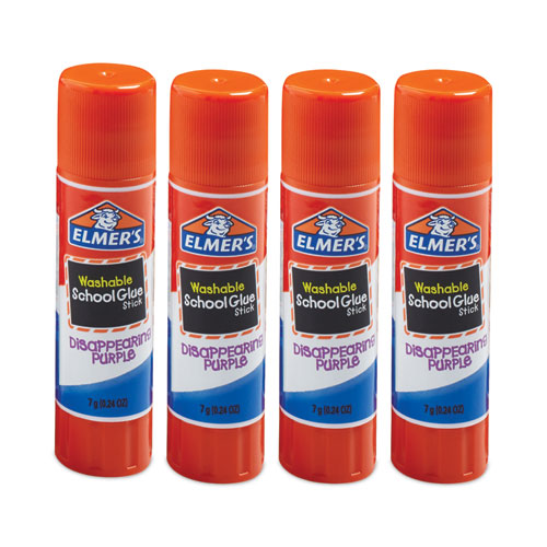 Washable School Glue Sticks, 0.24 oz, Applies Purple, Dries Clear, 4/Pack