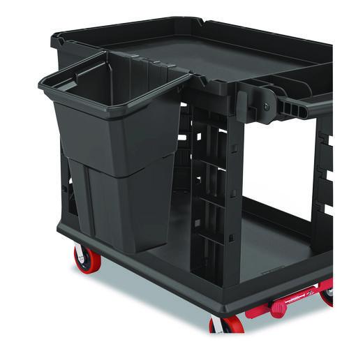 The Utility Bin by Suncast Commercial® is a perfect add-on for multiple Suncast Commercial® products. Depending on your need, you can store a variety of items in this bin, such as larger tools, cleaning supplies, or disposable items. With a capacity of eight gallons and a deep cavity, this bin should be able to hold whatever you store inside, while providing you additional storage space on your cart or inside your tilt truck.Note: This is a non-returnable item.