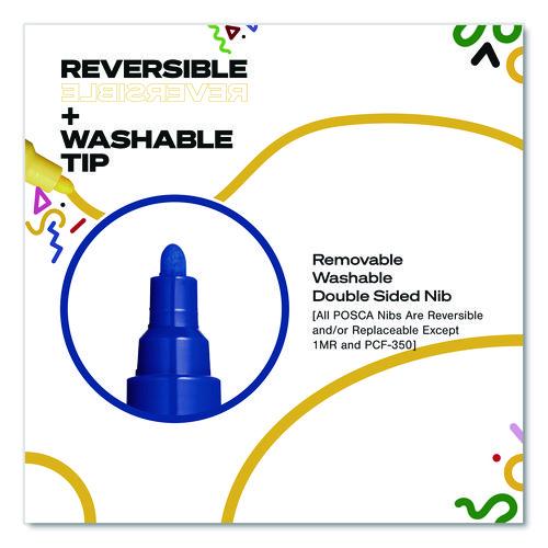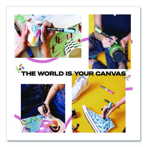 POSCA™ Water-Based Paint Markers can be used on almost any surface you can dream up: paper, glass, cardboard, wood, porcelain, metal, textiles, ceramics, plastics and so much more. Their felt tips are also versatile, allowing you to produce neat and precise lines when outlining and bold lines when filling in spaces. Water-based, alcohol- and solvent-free, opaque paint is blendable, covers surfaces well, dries quickly and can be layered once dry. Ideal for beginners and professionals alike, these markers are a fluid and fun choice for arts and crafts projects, retail window signage, automobile windshields as well as interior and exterior decor projects. As an added benefit, their tips can be rinsed with water to keep them intact, allowing you to blend without fear of ruining the color of any given marker. Non-toxic, light-fast and waterproof paint can be scraped off most nonporous surfaces, such as glass, while remaining permanent on porous surfaces, such as paper.