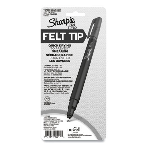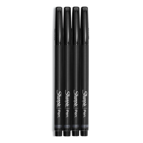 Water-Resistant Ink Porous Point Pen, Stick, Fine 0.4 mm, Black Ink, Black Barrel, 4/Pack