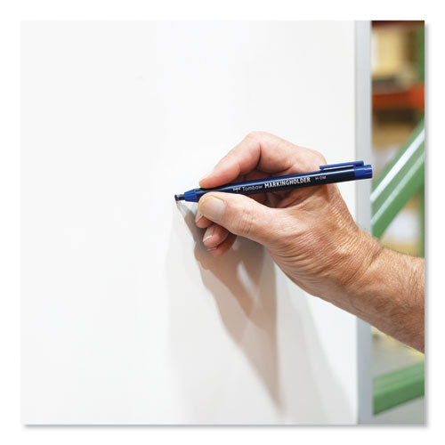 Versatile wax-based marking pencil for smooth, legible writing on a variety of surfaces. Use on both porous and nonporous surfaces, such as ceramics, stone, wood, glass, rubber, plastic, textiles, metal, coated paper, cardboard and more. Water-resistant and works great on both dark and transparent surfaces. Easily erase from nonporous surfaces by wiping with a damp cloth. Refillable pen-style body features rotate-to-advance system and durable clip, making it easy to use and store. No sharpening needed and pen-style design ensures entire marking pencil is used without any waste. Perfect for craftsmen and professional use in industrial environments. Economical to refill and reuse existing applicator.