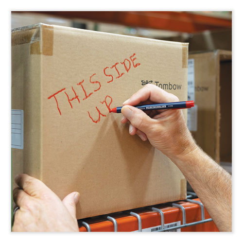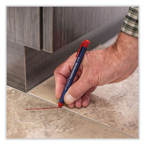 Wax-Based Marking Pencil, 4.4 mm, Red Wax, Navy Blue Barrel, 10/Box