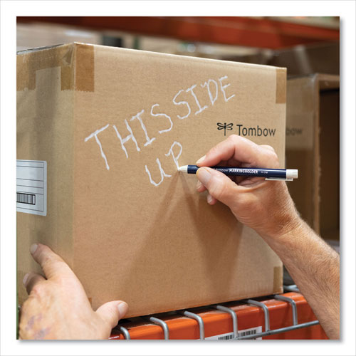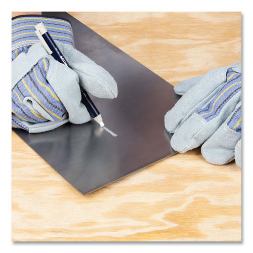 Versatile wax-based marking pencil for smooth, legible writing on a variety of surfaces. Use on both porous and nonporous surfaces, such as ceramics, stone, wood, glass, rubber, plastic, textiles, metal, coated paper, cardboard and more. Water-resistant and works great on both dark and transparent surfaces. Easily erase from nonporous surfaces by wiping with a damp cloth. Refillable pen-style body features rotate-to-advance system and durable clip, making it easy to use and store. No sharpening needed and pen-style design ensures entire marking pencil is used without any waste. Perfect for craftsmen and professional use in industrial environments. Economical to refill and reuse existing applicator.