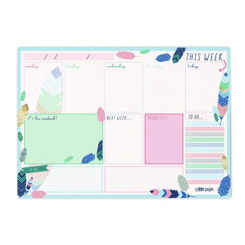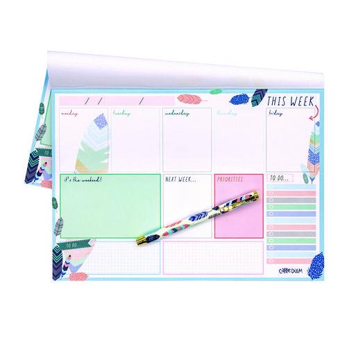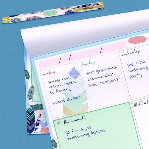 People expect more from PUKKA PAD® products and that's what they get with this Weekly Planner Pad. Featuring a compact design and a one week per page format, this pad's ideal for use on your desktop or on the go. Each weekly page provides dedicated sections for each weekday, the weekend, your to-do list, this week's priorities and next week's plans as well as both quadrille and dot ruled areas to accommodate anything else that you might wish to note. As each week passes, tear-away perforations allow you to make a clean start, while neatly keeping track of what you've done. Printed on high-quality, 100 gsm paper stock.Note: This is a non-returnable item.