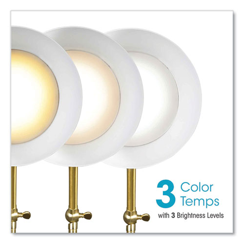 With bold brushed brass accents and matte black finish, the Adapt LED Desk Lamp makes being stylish a healthy decision. That's because this lamp features OttLite ClearSun LED technology - proven to reduce eyestrain by up to 51%. This exclusive LED comes as close to the sun's spectral output as you can get, helping you see details with incredible clarity and comfort. You can also select from two other color temperatures and three brightness levels with the touch sensitive button. The lamp also offers two locking joints to direct illumination and a USB port to fully charge your devices.Note: This is a non-returnable item.