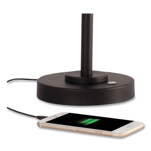 This popular classic counterbalance design just got even more beautiful with the addition of OttLite ClearSun LED technology that reduces eyestrain by up to 51%. Finished in black with antique brass accents, the Balance LED Desk Lamp is a perfect fit for any study, office, living room or bedside. And, you're in complete control with this fully customizable lamp, adjust the light angle at arm and shade, change the color temperature (ClearSun natural daylight, bright white and warm white), and select from three brightness levels. Plus, the 5 V, 2.1 A USB port lets you fully and quickly charge your devices.Note: This is a non-returnable item.
