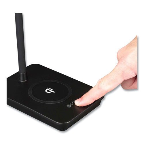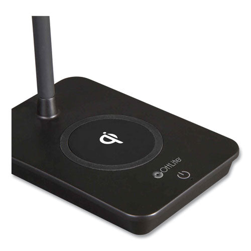 Enjoy seeing more clearly while you wirelessly charge your phone with the OttLite® Infuse LED Desk Lamp. This lamp features OttLite's ClearSun® LED technology that reduces eyestrain for hours of visual comfort. Totally adjustable, choose from three brightness settings and use the flexible neck to direct the low glare illumination where needed. Plus, this lamp features the convenience and ease of wireless charging--simply place your Qi-compatible phone on the lamp's base and charge. Or use the USB port to charge both smart phones and tablets.Note: This is a non-returnable item.