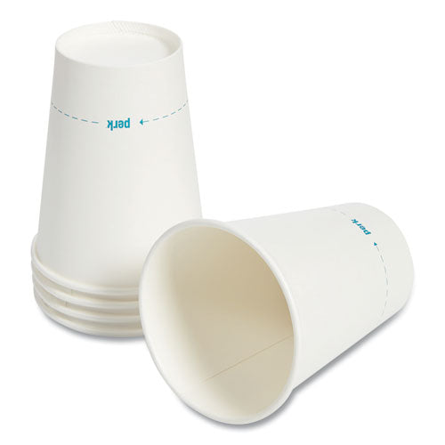 Disposable Perk™ single wall white paper hot cups bypass the sink and head straight for the bin for an effortless end to your break. Perfectly suit both hot and cold beverages. PLA lined interiors make messes a mere memory.