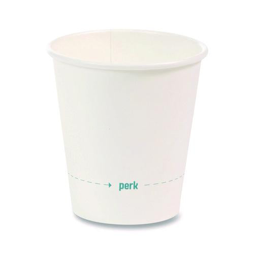Disposable Perk™ single wall white paper hot cups bypass the sink and head straight for the bin for an effortless end to your break. Perfectly suit both hot and cold beverages. PLA lined interiors make messes a mere memory.