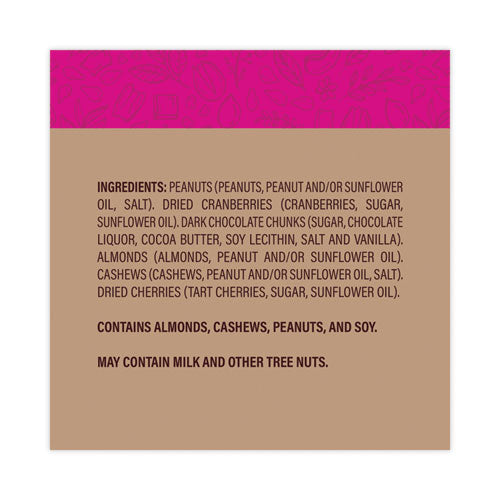 Discover a healthy way to indulge your sweet tooth. Almonds, cashews, and peanuts come together with dried cherries, cranberries, and dark chocolate for a salty-meets-savory combination that's simple yet tasty.Note: This is a non-returnable item.