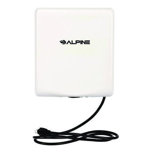 The Alpine Industries Willow Commercial Automatic Electric Hand Dryer is a high-speed automatic hand dryer with a unique design offering a blue light for hand drying efficiency. A HEPA filter cleans bacteria from intake air and the dryer is even equipped with a heat and speed control. With a less than 4" depth, this hand dryer is ADA-compliant without the need of a recess kit. With a powerful 32,000 RPM motor, the Willow model will dry your hands in 10 seconds, faster than many comparable high-speed hand dryers and excellent for high-traffic bathroom areas. Saving thousands of dollars per year in paper towels and electricity, the Willow hand dryer is also equipped with a plug-in option for quick and easy installation. Hand dryer automatically activates when hands are placed beneath the sensor and stops when they are removed. Also features auto-stop function if hands are not removed after 63 seconds.Note: This is a non-returnable item.