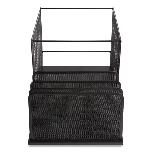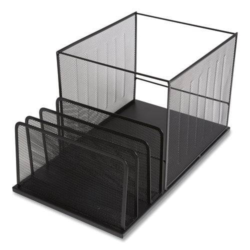 Cover several bases at once, and tidy up your workspace with one simple organization system. With multiple configurations and compartments for multiple purposes, it's easy to choose the variation that best serves your needs. A sleek design aesthetic featuring a tightly woven mesh body, a solid metal base and a flat-square frame with rounded edges delivers reliable performance and extra durability with a contemporary, professional flair. Integrated rubber feet enhance stability while providing reliable worksurface protection.