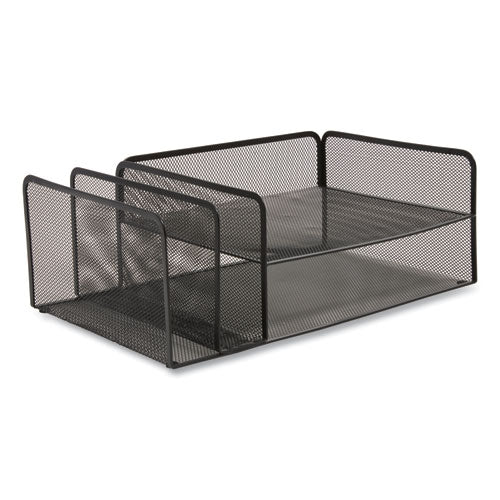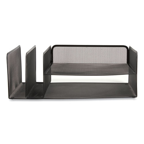 Cover several bases at once, and tidy up your workspace with one simple organization system. With multiple configurations and compartments for multiple purposes, it's easy to choose the variation that best serves your needs. A sleek design aesthetic featuring a tightly woven mesh body, a solid metal base and a flat-square frame with rounded edges delivers reliable performance and extra durability with a contemporary, professional flair. Integrated rubber feet enhance stability while providing reliable worksurface protection.