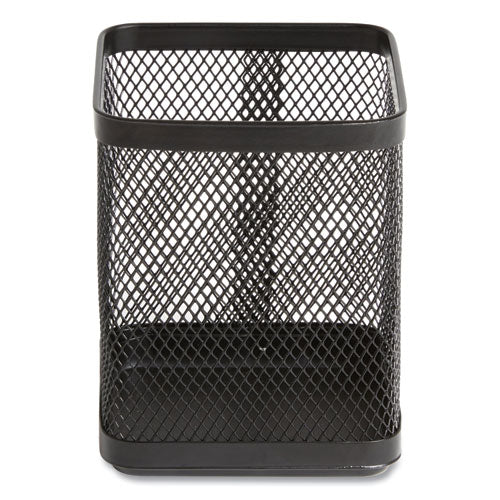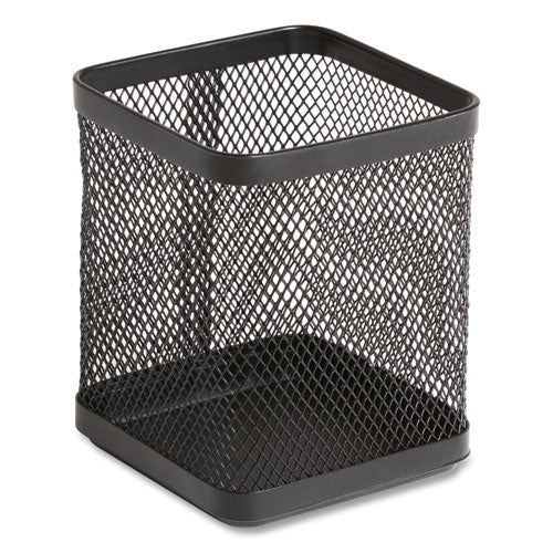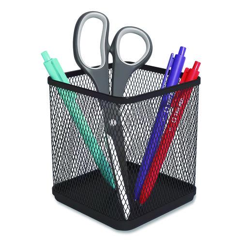 Keep your workspace organized. Single compartment keeps writing utensils and small office tools in one central location. Square design with flat rounded edges gives your desktop a contemporary look. Features tightly woven mesh construction for added durability.