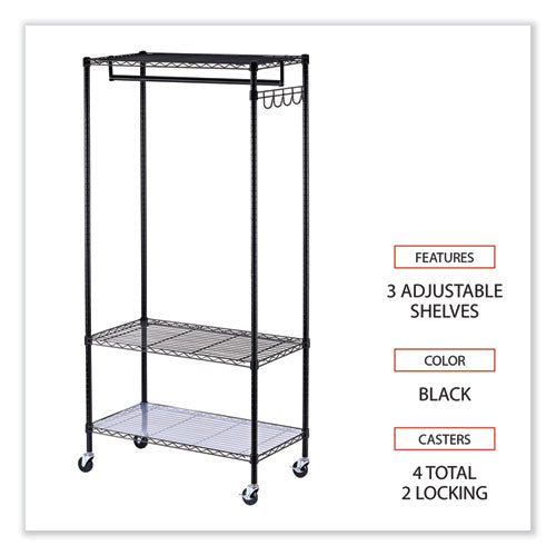 Wire Shelving Garment Rack, 30 Garments, 36w x 18d x 75h, Black