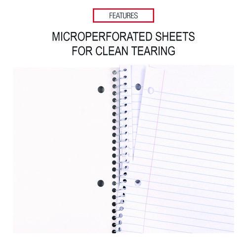 Choose this easy-carry notebook for all your note-taking needs. Durable coiled-wire binding allows you to fold back the cover to save space or to improvise a writing surface when you're away from your workspace. Twist-looped wire ends help keep bag and clothing snags to a minimum. Clearly ruled lines help encourage neat handwriting while making it easier to structure your thoughts. Micro-perforations along the binding edge of each sheet enable easy separation while keeping your work looking neat and clean.