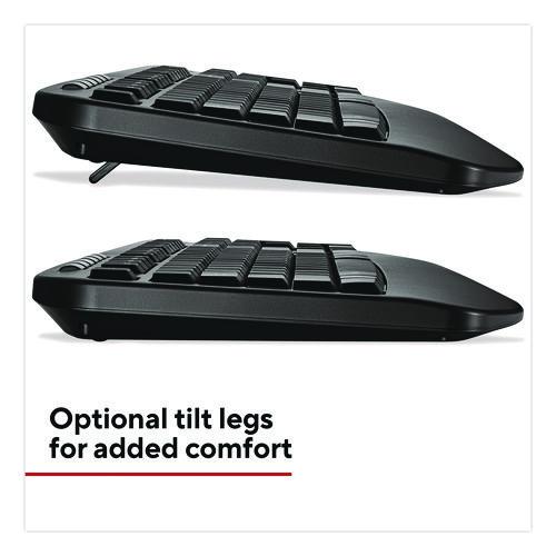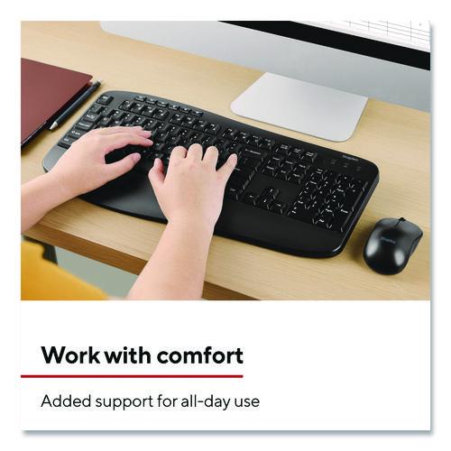 Grab a bundle of comfort and flexibility with this keyboard and mouse combo. This dynamic duo offers wireless convenience with quiet typing and ambidextrous usability. The mouse features a sleek contoured design for optimal grip with 1,600 dpi precision. Enhancing your comfort further with a cushioned wrist rest on the keyboard and adjustable tilt legs that allow you to find the best typing angle. These are designed to give you support and help you through long hours at the desk. Discover the perfect union of functionality and comfort with this workplace combo.