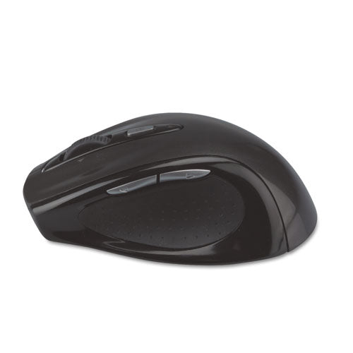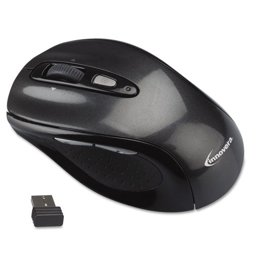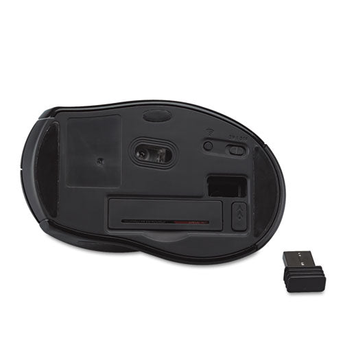 Improved optical technology allows mouse to track on most surfaces. No more productivity slow-downs while you wait to find a tracking surface. An ideal solution for desktop use and traveling, this wireless mouse has a USB-A receiver that can be left plugged into a laptop. DPI button allows switching between 800/1600 dpi for more precise control when you need it. Rubber grips and an ergonomic shape make the mouse comfortable to use.