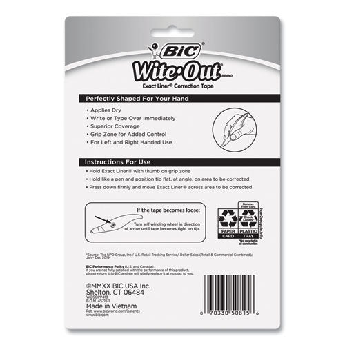 Naturally shaped to fit your hand, it makes fast, easy, precise corrections. Tape is tear-resistant and film-based. It applies dry so you can write over it instantly. The grip zone provides comfort and control for easy and convenient correcting.