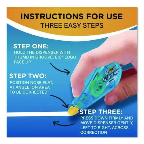 Convenient mini size. The integrated twist cap guards against tearing, and the tape itself is tear-resistant and film-based. Fixes mistakes fast. It's great for the home, school or office. Write or type over it immediately after you use it.