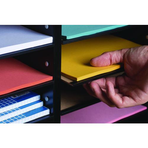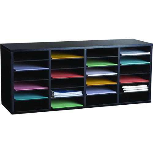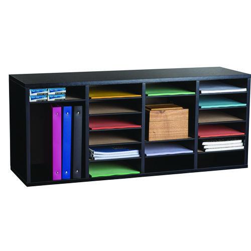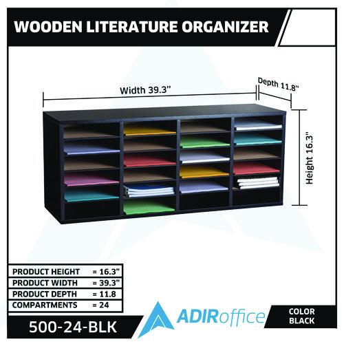 The AdirOffice Wood Adjustable 24 Compartment Literature Organizer is just the ticket for organizing and keeping track of sales brochures, product literature and other office materials supporting your company's business. These attractive storage units make life easier for your sales support staff members, especially if they have other responsibilities as well. Ruggedly constructed, this accessory is made out of durable, medium-density fiberboard construction to supply long-lasting strength for years to come. The letter size compartments hold up to 15 lbs and adjust in 2.5 in increments to meet all of your needs in the home, office or classroom. Tasks are made easier because these organizers provide options including color coding and labeling capabilities, enabling quick selection of material to be distributed. It features an 11.8 in depth and removable shelves to accommodate items of various different sizes.Note: This is a non-returnable item.