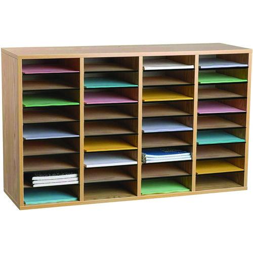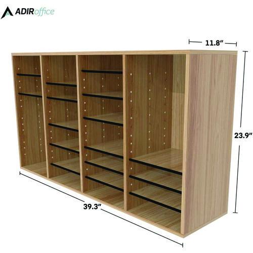 The AdirOffice Wood Adjustable 36 Compartment Literature Organizer is just the ticket for organizing and keeping track of sales brochures, product literature and other office materials supporting your company's business. These attractive storage units make life easier for your sales support staff members, especially if they have other responsibilities as well. Ruggedly constructed, this accessory is made out of durable, medium-density fiberboard construction to supply long-lasting strength for years to come. The letter size compartments hold up to 15 lbs and adjust in 2.5 in increments to meet all of your needs in the home, office or classroom. Tasks are made easier because these organizers provide options including color coding and labeling capabilities, enabling quick selection of material to be distributed. It features an 11.8 in depth and removable shelves to accommodate items of various different sizes.Note: This is a non-returnable item.