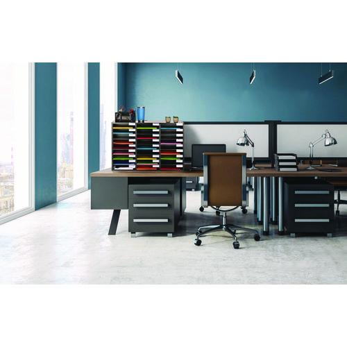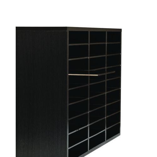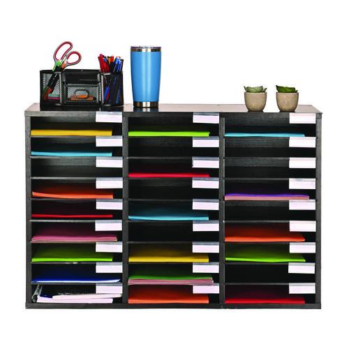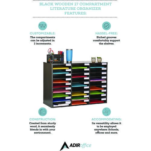 Life is crazy and messy, but you can help yourself, staff, and students stay as organized as possible with this wooden 27 compartment literature organizer. Its versatility allows it to be employed anywhere, such as at school, offices or daycares. Created from sturdy finished wood material, the contemporary literature organizer will seamlessly blend into your room and outlast cheap cardboard alternatives. Our customizable organizer can be adjusted in 2-inch increments, accommodating a variety of items you need to store. With no pesky wooden pegs to adapt to the perfect size, you can effortlessly change each shelf firmly supported by grooves etched in the wood. It can hold papers, files, or even larger items like art projects, office supplies, and binders. Each shelf is constructed from durable MDF; so, you can be assured it will firmly hold your items.Package Includes: Transparent Name TagsNote: This is a non-returnable item.