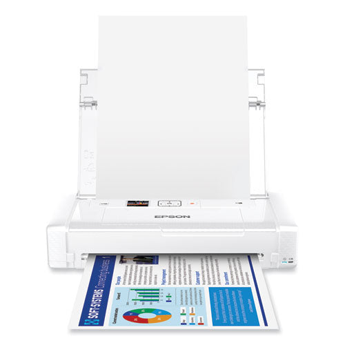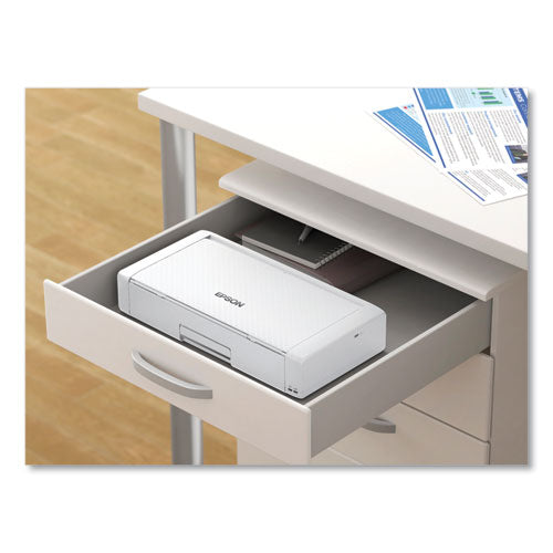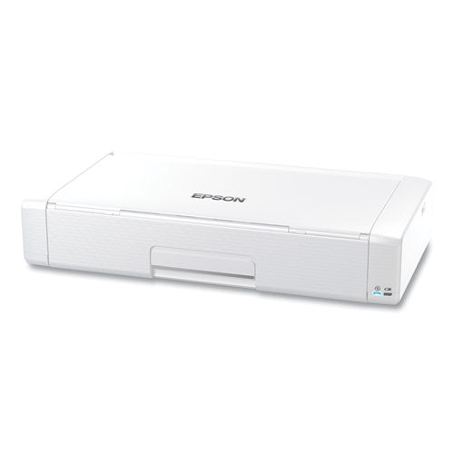 Enjoy fast, effortless printing wherever business takes you with the WorkForce EC-C110 wireless mobile printer. The lightest and smallest color mobile printer, the sleek EC-C110 can be easily transported in bags and briefcases for worry-free printing on the go. This powerful, portable printing solution is fully rechargeable via USB or AC adapter and can provide even greater print volume when paired with the optional external accessory battery. Plus, with built-in wireless connectivity and Wi-Fi Direct®, the EC-C110 lets you quickly print presentations, invoices, contracts and more from the convenience of your iPad®, iPhone®, tablet, smartphone or laptop. Works with Amazon Alexa and Google Assistant™.Package Includes: CD-Rom with Drivers; (2) Ink Cartridges; Instruction Booklet; Power Cord; Replacement Maintenance BoxNote: This is a non-returnable item.