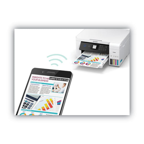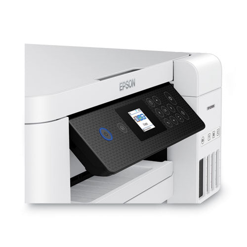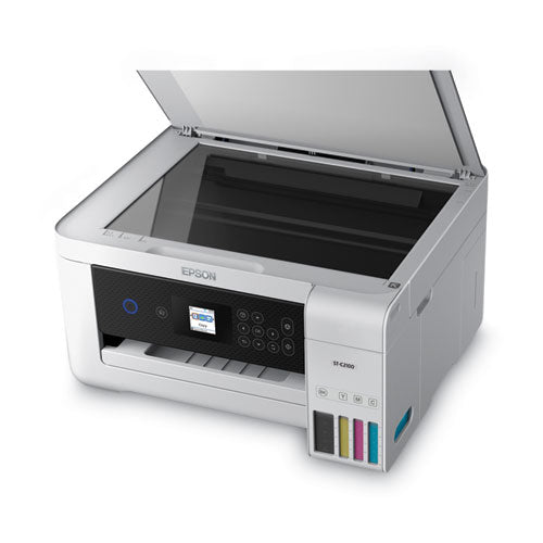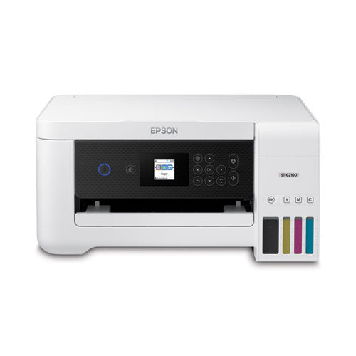 The WorkForce ST-C2100 Supertank Color MFP makes it easy for small offices to make a big impact. Offering remarkable productivity, it features cutting-edge Supertank printing technology with easy-to-fill, supersized ink tanks with a small compact footprint. You won't have to worry about running out of ink at a critical moment since it includes up to two years of ink in the box—enough to print up to 6,500 pages black and 5,200 pages color. Your CFO will appreciate the fact you save up to 90 percent with low-cost replacement ink bottles vs. ink cartridges, equivalent to about 90 individual ink cartridges. The ST-C2100 also offers convenient wireless printing from tablets and smartphones, along with Wi-Fi Direct® and auto two-sided printing. Plus, the WorkForce ST-C2100 is compatible with the Epson Smart Panel® app, a powerful tool that makes it easy to set up, monitor, print, scan, order supplies and more right from your hand-held device.Package Includes: Manual; Power Cord; (1) Ink Bottle 502 Black (127 mL); (1) Ink Bottle 502 Cyan (70 mL); (1) Ink Bottle 502 Magenta (70 mL); (1) Ink Bottle 502 Yellow (70 mL)Note: This is a non-returnable item.