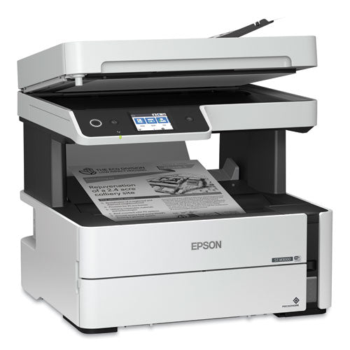 The WorkForce ST-M3000 monochrome supertank multifunction printer, powered by PrecisionCore®, offers worry-free, cartridge-free printing with an easy-to-fill, supersized ink tank. It includes up to two years of ink in the box. Users save up to 75% with low-cost replacement bottles vs. mono laser toner - about 1/3 of one cent per ISO page vs. 2.5 cents. The ST-M3000 includes enough ink to print up to 11,000 pages black. It features fast print speeds and a fast first page out. Plus, it offers a 250-sheet paper tray, 30-page ADF, auto two-sided printing, plus copying and scanning and wired and wireless networking. You save energy with lower power consumption vs. laser.Note: This is a non-returnable item.