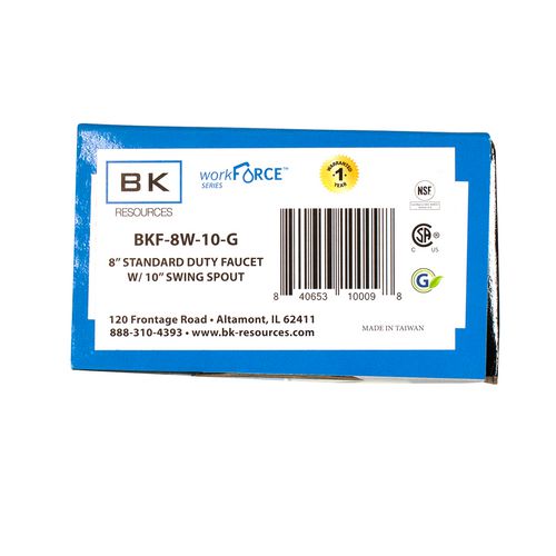WorkForce Standard Duty Faucet, 8" Height/10" Reach, Chrome-Plated Brass