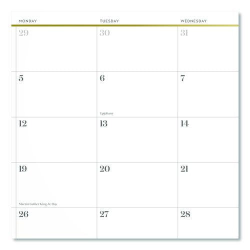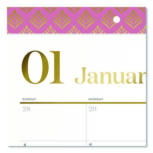 Find refined style and simplified planning with the Cambridge WorkStyle Desk Pad Calendar. Perfect for any professional, this calendar gives you more ways to keep events, appointments and deadlines organized for yearly planning.Simple. Sophisticated. Stylish. The Pink headband gives your plans a stylish and sophisticated look. Never miss a moment. Unruled monthly pages let you see your big picture plans in an instant. Create a lasting relationship with your calendar. The durable top binding helps the calendar stand up to wear and tear and has eyelets for optional wall hanging. Keep your pages organized. Two clear poly corners help keep pages flat, while a clear overlay helps protect your plans. Each page is perforated for easy removal.Note: This is a non-returnable item.