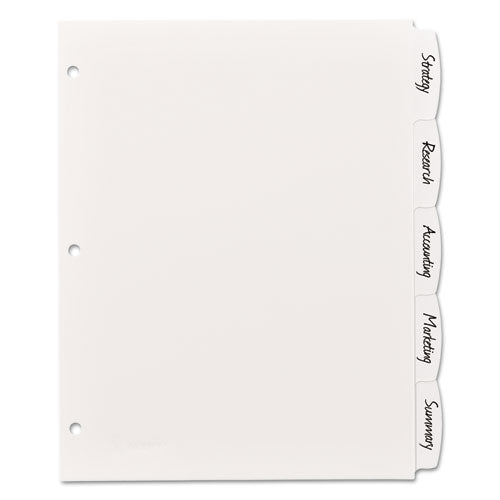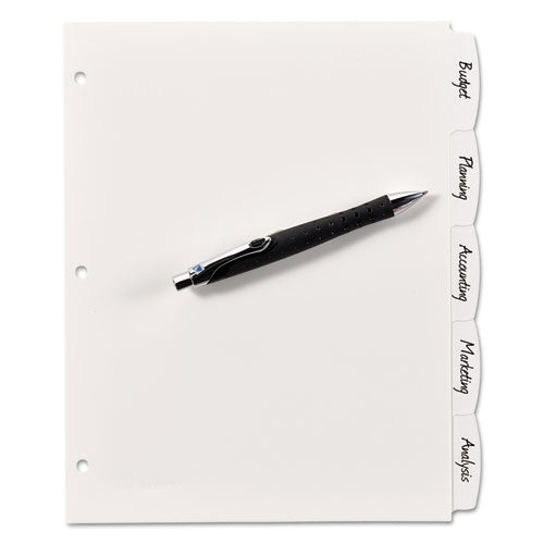 Write and Erase Big Tab Durable Plastic Dividers, 3-Hole Punched, 5-Tab, 11 x 8.5, White, 1 Set