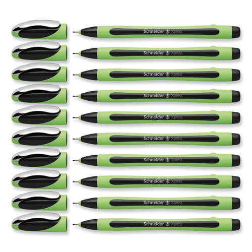 Xpress Fineliner Porous Point Pen, Stick, Medium 0.8 mm, Black Ink, Black/Green Barrel, 10/Box