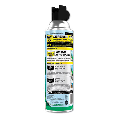 Part of the Raid Defense System, Raid Yard Guard Mosquito Fogger kills flies, mosquitoes, wasps and hornets for up to six hours, covering up to 30 ft x 30 ft. Also effective against non-biting gnats, small flying moths and multi-colored Asian lady beetles. This product is for outdoor use only. For best results spray towards the area being treated and while the air is calm.