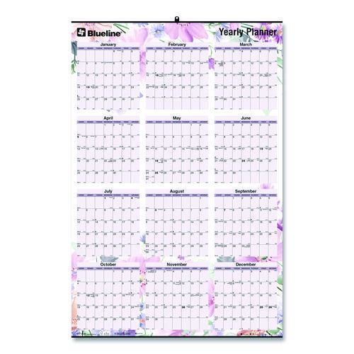 Yearly Laminated Wall Calendar, Passion Floral Artwork, 36 x 24, White/Multicolor Sheets, 12-Month (Jan to Dec): 2026