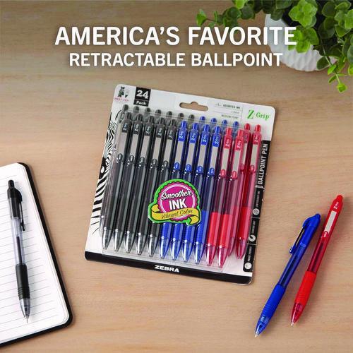 Z-Grip Ballpoint Pen, Retractable, Medium 1 mm, Assorted Ink and Barrel Colors, 24/Pack
