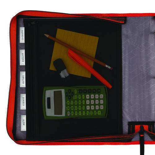 Lasts all year! Guaranteed! A durable build and a water-resistant shell make it so. Between its rings and various storage options, this binder can keep that whole year together in one place, too. Interior zipper pocket keeps your school supplies secure. Zipper-closures, all around, ensure quick and easy access to all of your materials. Durable handle makes carrying it easy, but it slips into a book bag without a hitch, too.